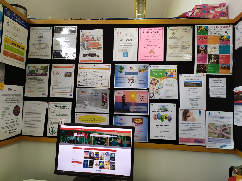 Features: The Childers Library is part of the Bundaberg Regional Libraries and offers traditional and digital library services. The library had an open design. The foyer consisted of the service desk, reading area and computers. The back of the library consisted of the book collection and the children’s area. There were about 3 clients at the time of my visit – one on the computer, one reading newspapers and the other browsing the shelves. The 3 staff that were on duty were friendly – 2 outside looking at the front display and 1 inside tidying shelves who informed me that they were going to close in 5 minutes for lunch and if I needed to take a book out I needed to do it then.