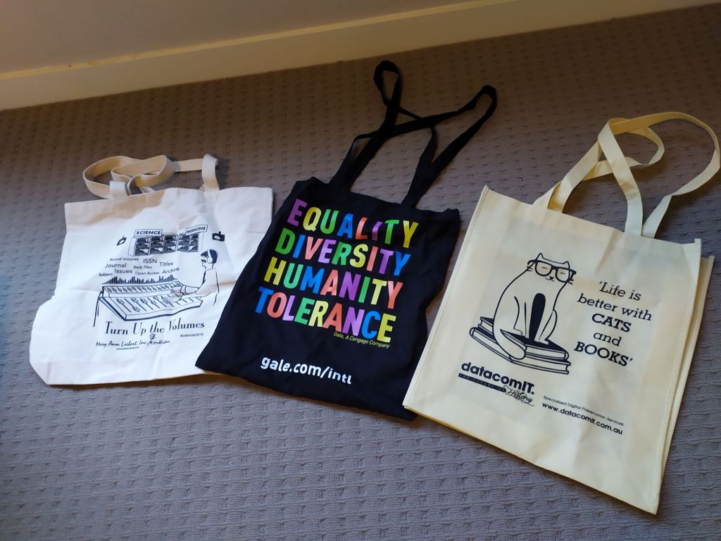 Again for some reason, I did not take as many photos of the people I met, caught up and mingled with. But I did find two Tasmanian library folks – from Libraries Tasmania and Tourism Tasmania. It was also great to finally meet my Twitter friend Jane Cowell in person. What an amazing professional – both online and in person. There weren’t many students or international folks though – I only met a few. I did talk to some of the vendors and grabbed their bags of goodies (well I liked the bags). But the best vendor conversation I had was at the Koha stall. It was great to talk about my first ever library project using and implementing the Koha open-source library system software. I love open-source. It was also great to see old friends again – Megan Ingle, Steven Chang, Matthias Liffers, Janice Chan, Con Wiebrands, Kim Williams, Kathryn Greenhill just to name a few….