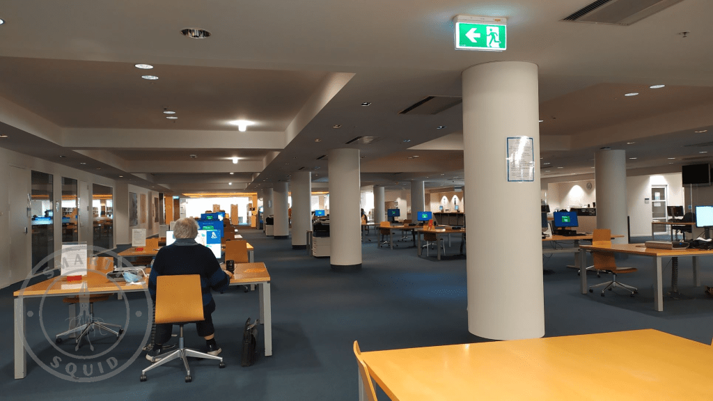 Ok here was the space that I really wanted to use as there were PCs available for use by the public. This area was staffed. I spoke to one of these library staff to check if the Angas prints were available in their online collection. But I was surprised that they didn’t know. They were helpful though and suggested that I could have a look at the book that coincided with the collection. They had a look at their website to see but to no avail. Sigh.