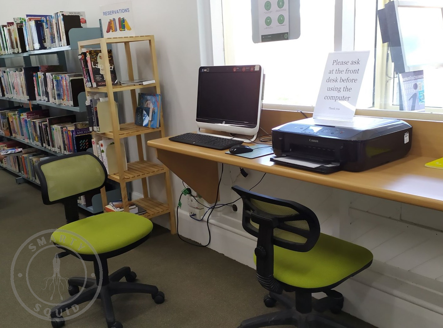 The library offered contemporary library service and collection for its community and visitors. There was one PC available for use and being a small town had a ‘mini’ holds shelf. Books for sale were available and there was a pretty view of the ocean from the little window.