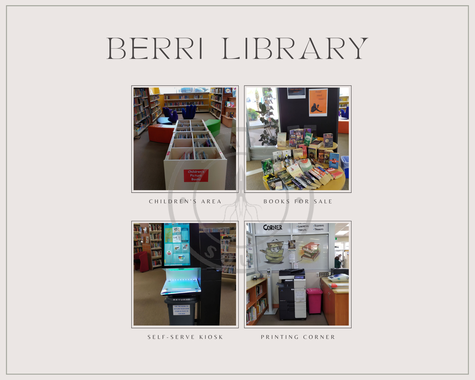 Features: A member of the South Australia public library network and is a joint-use library catering to the public and to the Berri High School community. So at the time of the visit, there were school groups using the space.